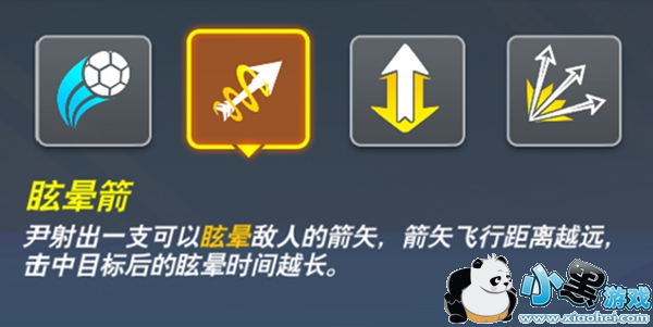 尹射出一支可以眩晕敌人的箭矢,箭矢飞行距离越远,击中目标眩晕时间越长。