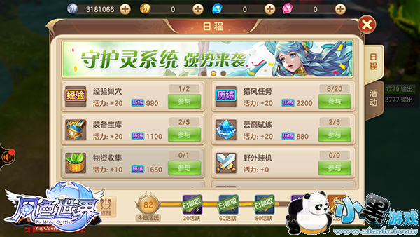 日程最主要的目的其实就是防止大家在游戏内迷路,每天必做的任务都会在这里显示。按照每天的日程完成任务可以获得相应的活跃值,等达到一定数值还可以领取相应的奖励。