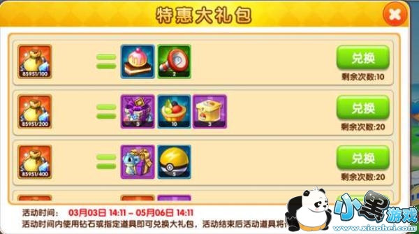 - 活动期间使用钻石或指定道具可兑换特惠礼包