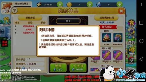 - 在活动界面点击单抽或者十连抽,直接进行抽奖,并且获取活动积分进入排行榜!积分排名显示的是当前的排名。若排名过多,可以滑动排行榜显示所有排名。