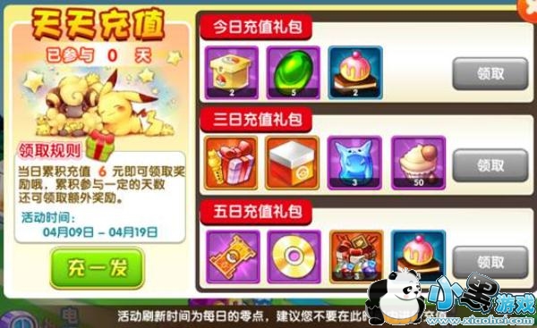 - 活动期间每天充值达到指定额度即可领取对应礼包