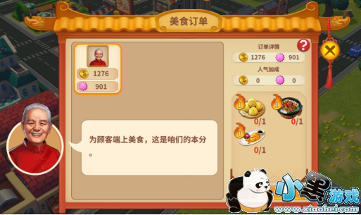 菜品完成后如下图:菜品会呈现在餐厅顶部,方便咱直观可见;收取后随即去【订单】建筑,分配给对应发出订单的顾客,获得金币和经验,发家致富啦~~