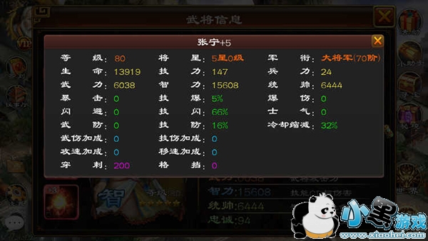 整场战斗关羽都是飞刀流,主要得以于张宁的计闪,我们先看看张宁的配置。