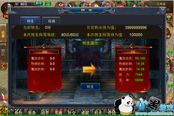 转生炼魂功能需要转生达到相应的转数后才开启。炼魂能大幅度提升本职业的攻击能力。