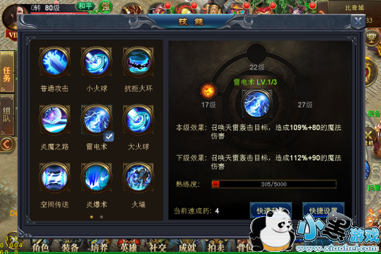 技能推荐:雷电术、火墙、魔法盾、冰咆哮