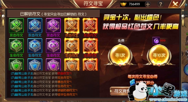 寻宝10次必出橙色且获得红色符文几率更高