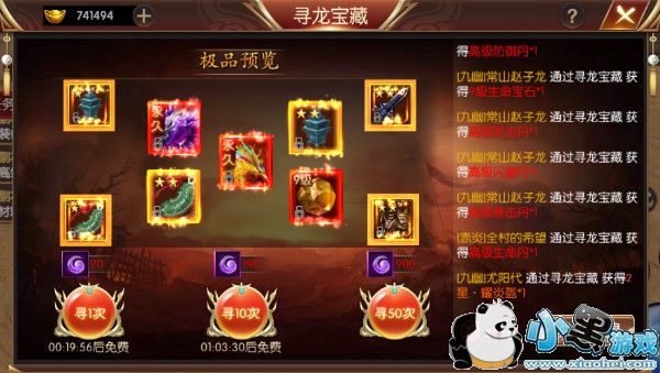 如果嫌免费次数不够的话,还可以使用元宝购买紫金进行寻宝