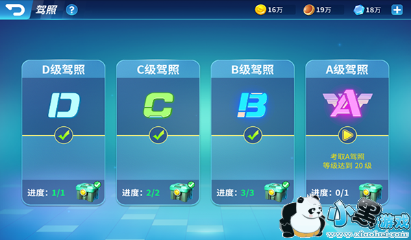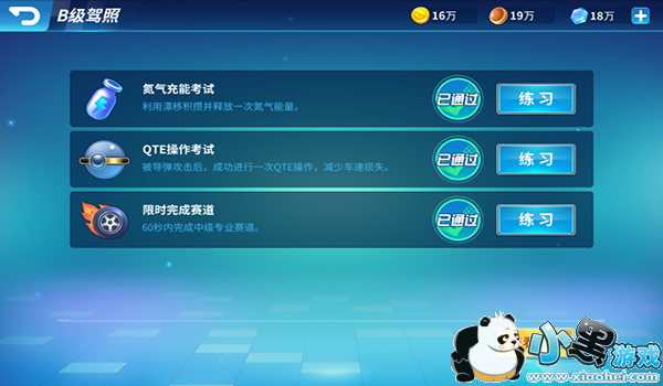 玩家达到5级可考取C级驾照,具体考试项目是道具图鉴考试和加速道具使用考试。道具图鉴考试里包括了道具赛中各种道具的具体用途,加速道具使用考试只需要拾取道具使用一次即可,非常简单。