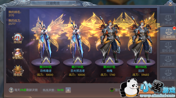玩家每天有10次挑战机会,挑战比自己排名更高的玩家,挑战成功后挑战者与被挑战者排名互换。