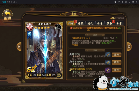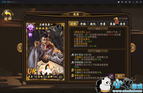 战法:将军,CD30s,自身半径10m,友军战法提高350%&清debuff 持续25s 技能评价四星。