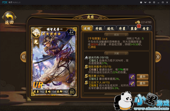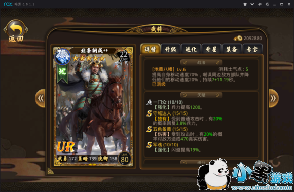 战法:战神,4士气,CD15s,自身半径8m,对敌军伤害B,眩晕8s 技能评价三星半。