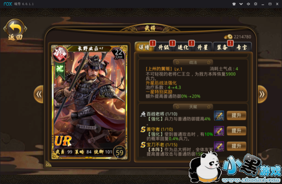战法:黄斑 4士气,CD10s,本阵恢复兵力S,提高自身双防,技能评价三星。