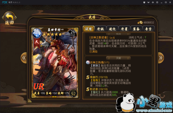 推荐装备:真田幸村专属红套装,战神套装,缘分装备。