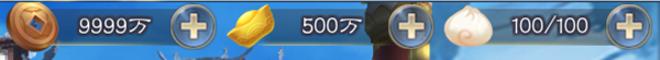 右侧是资源栏,分别是铜钱、元宝、体力值。