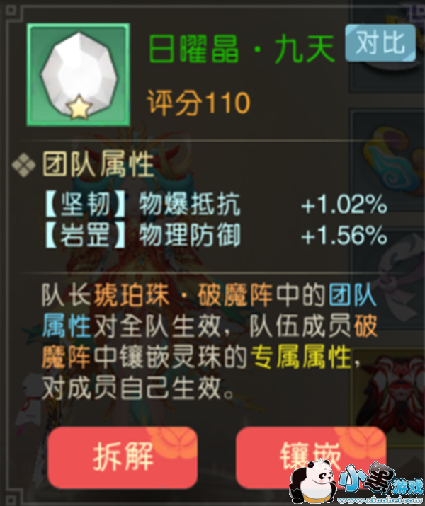 (2)每种阵法水晶还有对应的星级,最低为一星,最高位五星。同品质阵法水晶星级越高,阵法水晶的评分就越高,相应的属性加成也越高。
