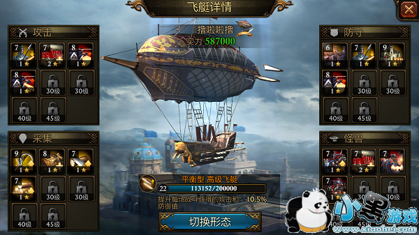 玩家可在平时采集或打怪时获得飞艇攻击值及防御值,可以用来升级飞艇技能。
