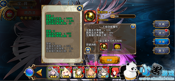 使用同种的1级宝具作为材料,将原有宝具突破它的极限!突破天际!突破宇宙!没有最强!只有更强! 您没看错,每次突破都会有海量属性加成! 同为宝具,差别,就在这里!