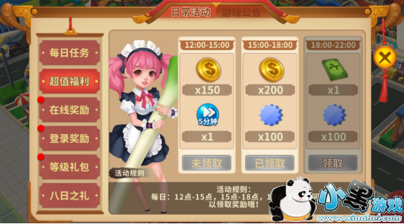 二、超值福利:每天在此三个时间段都可领取奖励哦!