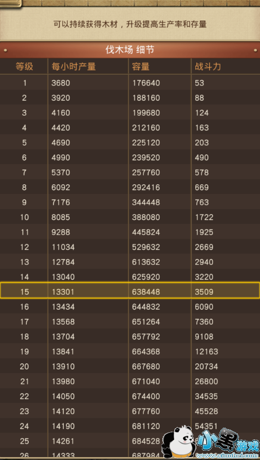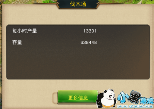 每个木矿的等级不同,每小时产量不同,容量也不同。等级越高,每小时产量越高,容量越高。详细信息,可以点击游戏内的更多信息查看到。