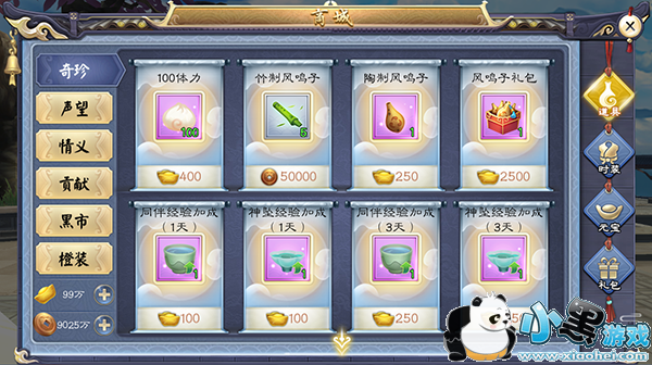 3、商城购买体力。在商场道具-奇珍、商城道具-贡献都可以使用元宝购买。