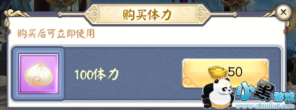 2、购买体力。每次购买获得100体力。每天首次购买需要50元宝,每次叠加50元宝,最高单次购买需要消耗400元宝。