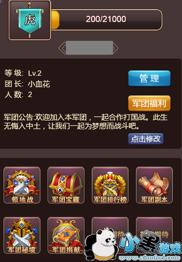 挑战关卡通关第4章开启盟战,可以申请或者创建公会军团。创建军团需要消耗50钻石。加入军团可以提升战力,不同等级的公会提升的战力也不一样。