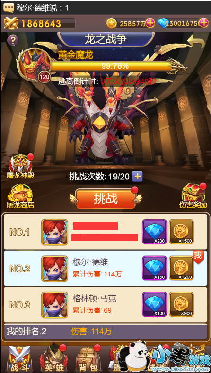 3.每届屠龙大赛期间,每次挑战魔龙均可获得屠龙币奖励,当累计伤害达到一定值后,可领取更加丰富奖励。