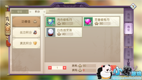 另外,除了交易行和商城,山海世界还有商会可供大人们进行交易,在商会里,大人可以通过银锭购买相应的物品,还可以在商城内通过各类积分换取物品,其中,“功德值”、“战功积分”、“演武积分”都可以换取超值的物品!