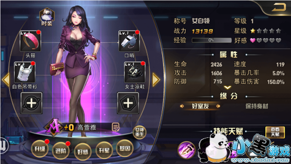 女白领高萱雅是进入游戏后首次抽卡获得的女神。别看她是免费送的A级女神就忽略她。女白领在前期玩家战斗中有很大的作用。下面我们来具体分析下女白领的属性。