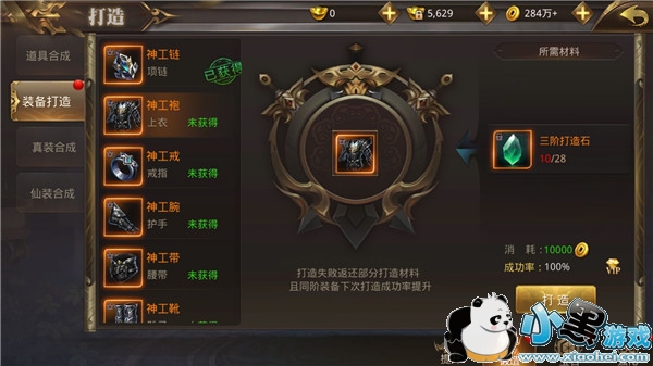 可打造的装备分为5阶,每提升1阶装备战力将获得大幅度提升;不同阶数的装备打造需要消耗不同等级的打造石;而这些打造石的获取方式有很多,从游戏活动、装备副本、主线副本中都能得到。