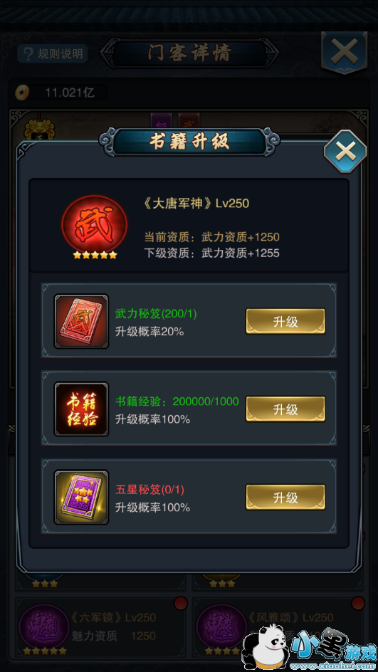 ②秘笈:这个东西是提升门客的主要道具,前期关卡送的很多,不要浪费乱用,我看群里好多朋友都拿去提升2或者3资质的门客,虽然成功几率很高但是得不偿失,尤其到了后期会和别人差。