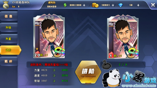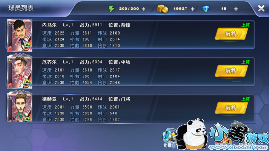 球员系统可以让你对所有的球员根据不同的分类方式逐一查看。如首发球员,就是游戏界面当前主要阵容中的球员。点击他们后可以看到球员的各种品级、国籍、属性等,同时可以看到球员单独的养成系统,为他们提供装备、进行升级和升星等等。