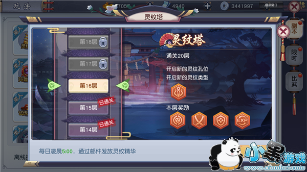镶嵌灵纹可以获得人物属性加成;灵纹孔位通过挑战灵纹塔解锁,每个孔位可以镶嵌一种属性的灵纹且不能重复;分解不需要的灵纹可以获得灵纹经验,用以升级镶嵌的灵纹。