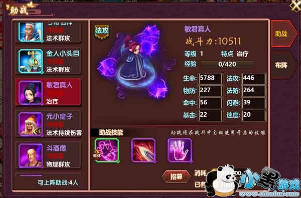 招募:通过点击主界面“招募”按钮进行伙伴招募,招募需要消耗一定的元宝。分3种级别。