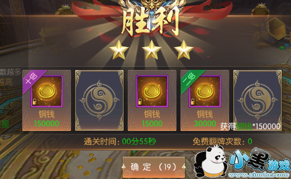 挑战成功后还有3次翻牌奖励,其中包含2倍,5倍和10倍奖励,就看看您运气怎么样了(您也可以使用元宝或绑元将所有奖励都获取的)
