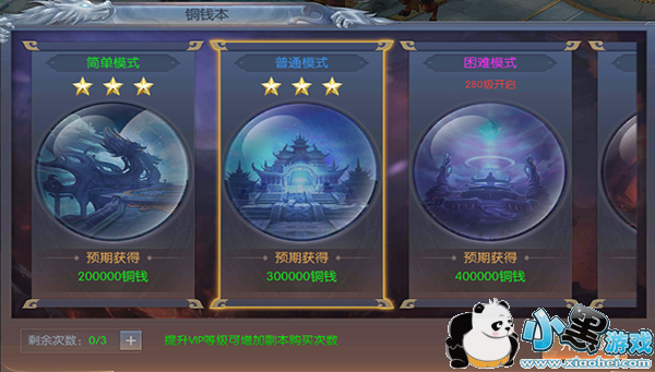 每天都有三次免费挑战铜钱本的机会(VIP越高可购买次数越多)