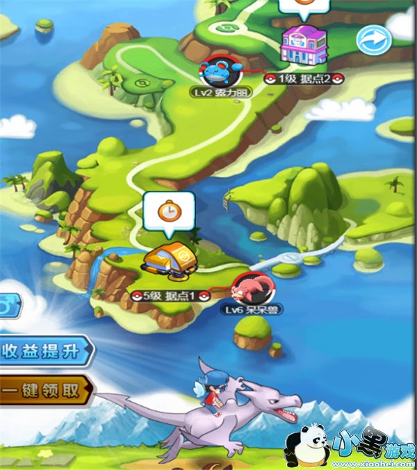 玩家可以通过击败据点旁边的精灵来提升据点等级获得更高的收益(获得双倍经验的概率得到提升),当据点级数更高时,可以到达下一个据点,获得奖励提升。