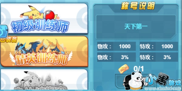 不同的称号可以提升不同的能力,称号可以在不同地方取得,例如精英训练师是得在竞技场排名达到前三方可在竞技商店的奖励界面花费500声望值取得。当然,天下第一的称号则是最强称号的存在,加成巨大,但也很难获得。