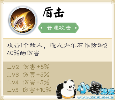少年石作攻击一个敌人,造成防御数值240%的伤害。