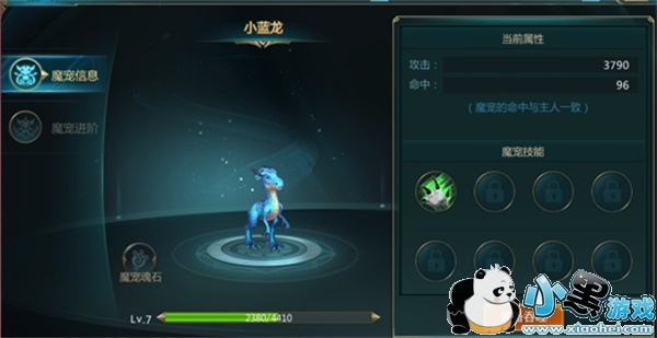 玩家达到12级开启魔宠系统得,得到初始魔宠小蓝龙。