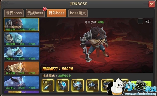 (3)击杀boss等级原则:优先击杀低于自己并且推荐战力最接近自己的boss,因为此时获得的奖励最好(如果boss等级高于自身等级50级时,会额外受到伤害,所以尽量不要铤而走险)