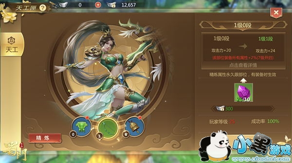 天工匣:玩家可以对天工匣内不同装备部位进行精炼,精炼成功即可提高该部位的段位,从而提升战力。