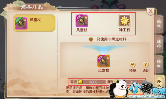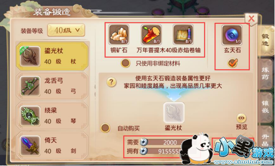 另外一种是强化锻造,需要消耗银两、对应的材料等,外加强化石(玄天石、御魂石等均为强化石)。可以通过参与特定游戏玩法获得,也可以直接在商城购买)。这种锻造不会打造出普通装备,只会生产出优良品质以上的装备,有一定几率生产出神工品质的装备, 锻造界面可以预览锻造的武器属性图。