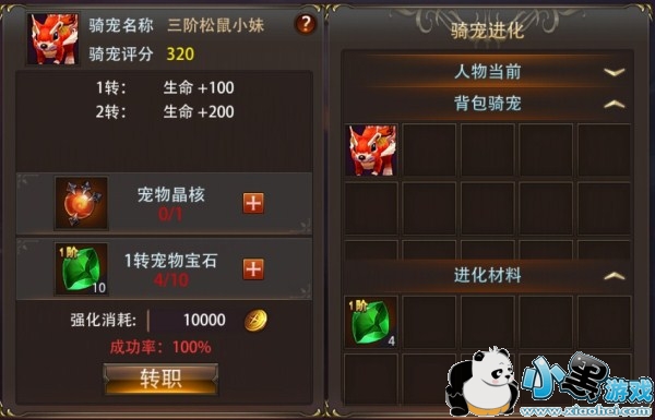 宠物进化可以提供大量的生命加成,坐骑进化可以提供大量的攻击加成。