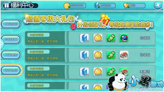 超值等级大礼包,升级领好礼等级越高奖励就越丰厚!等级达到20级、25级、30级、35级等均可领取专属豪礼,水晶、金币、糖果、精灵球、卡牌礼包等,领到手软喔!哈哈哈!