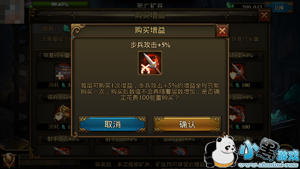 击败每一层守护者之后都可以获得一定数量的能量,并且可以用能量购买一次增益,除了恢复行军容量外,其他每种增益只能购买1次。没有购买的增益会随着层数提升而提升。