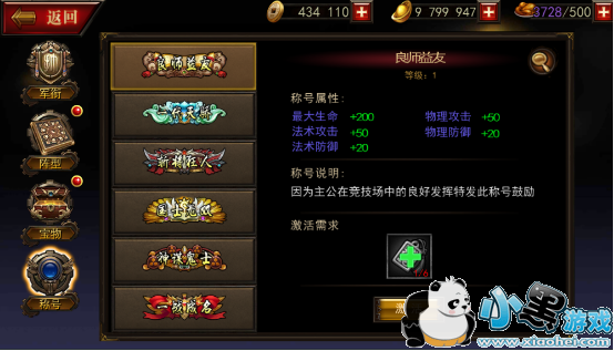 主公称号和主公宝物一样,需要获得特定道具才可以激活,不同的是激活道具早其他的系统功能中都有产出,同时在游戏的活动中也会有一定量的产出。