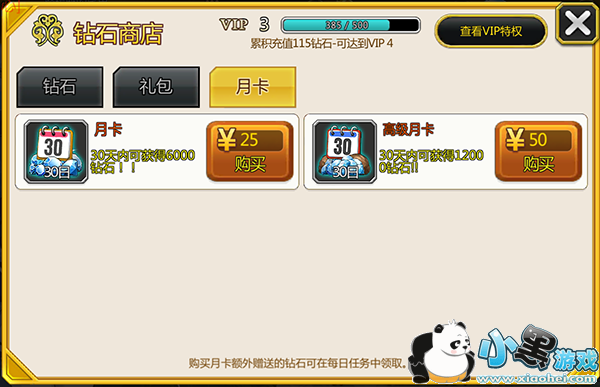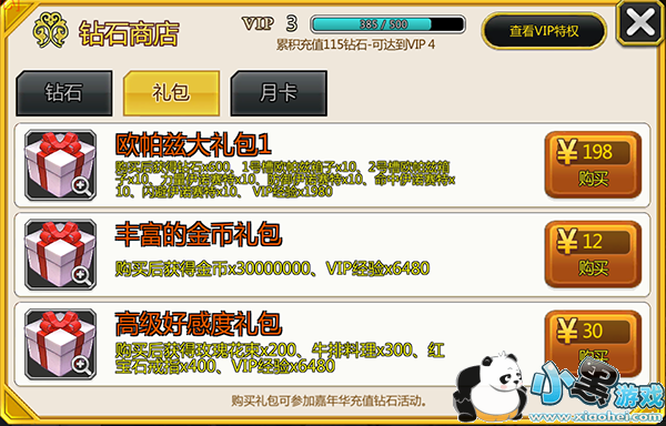 游戏当前版本共包含6个充值档位,钻石与RMB的比值约为10:1,首次充值钻石还有额外钻石赠送,充值同时累计VIP经验值;