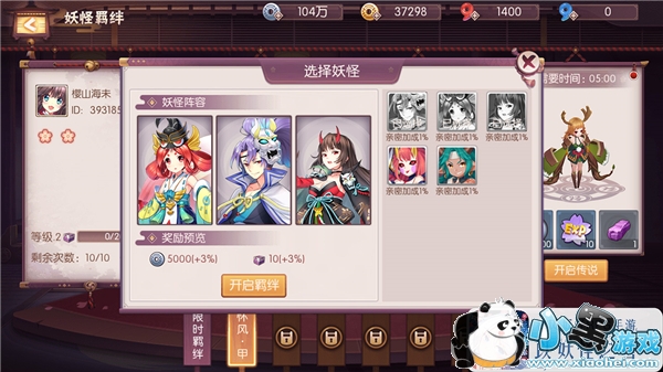 妖怪羁绊是放置型休闲玩法,选择妖怪阵容开启羁绊,要满3名妖怪才能开启,一段时间过后就可回来直接领取奖励,轻松至极。