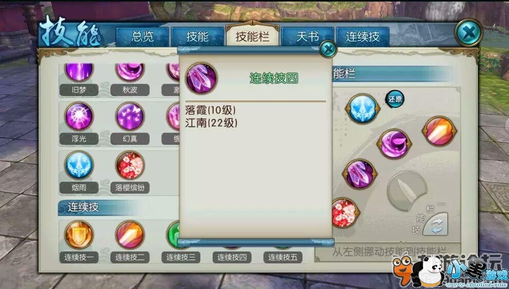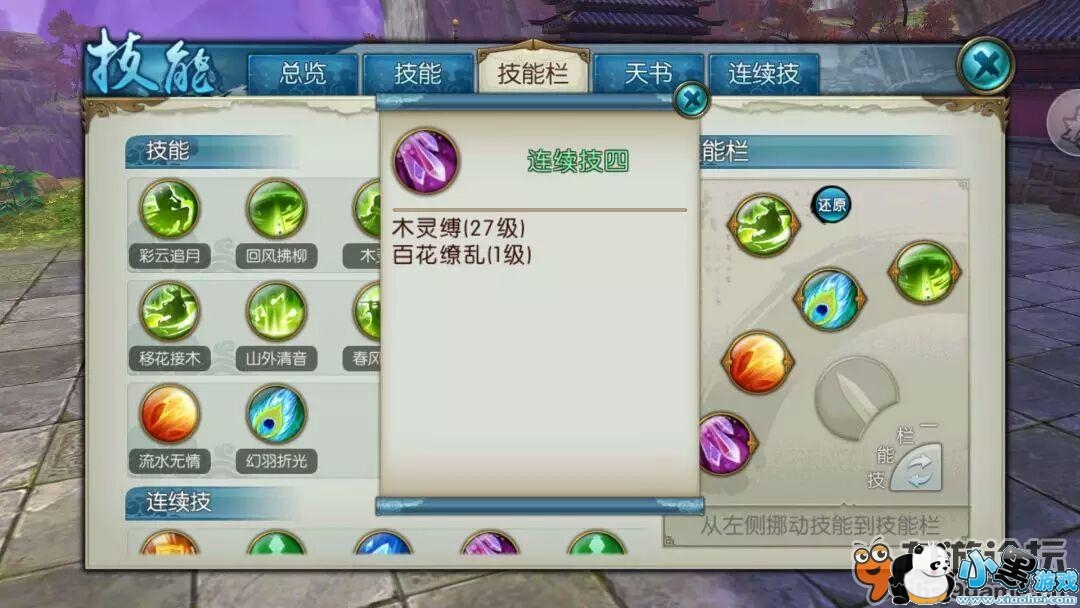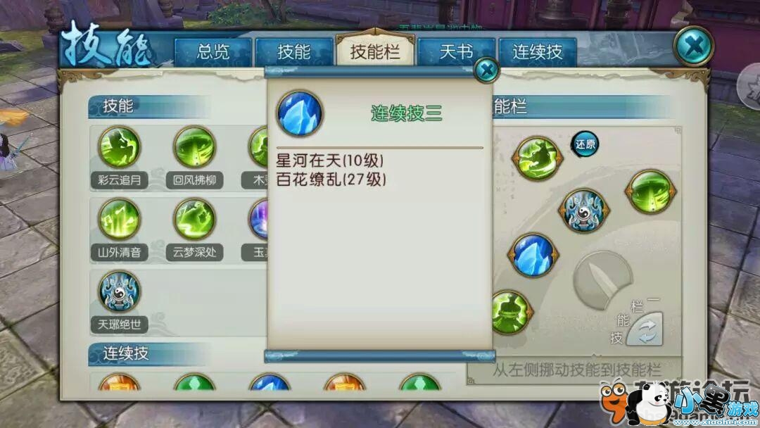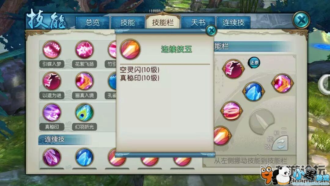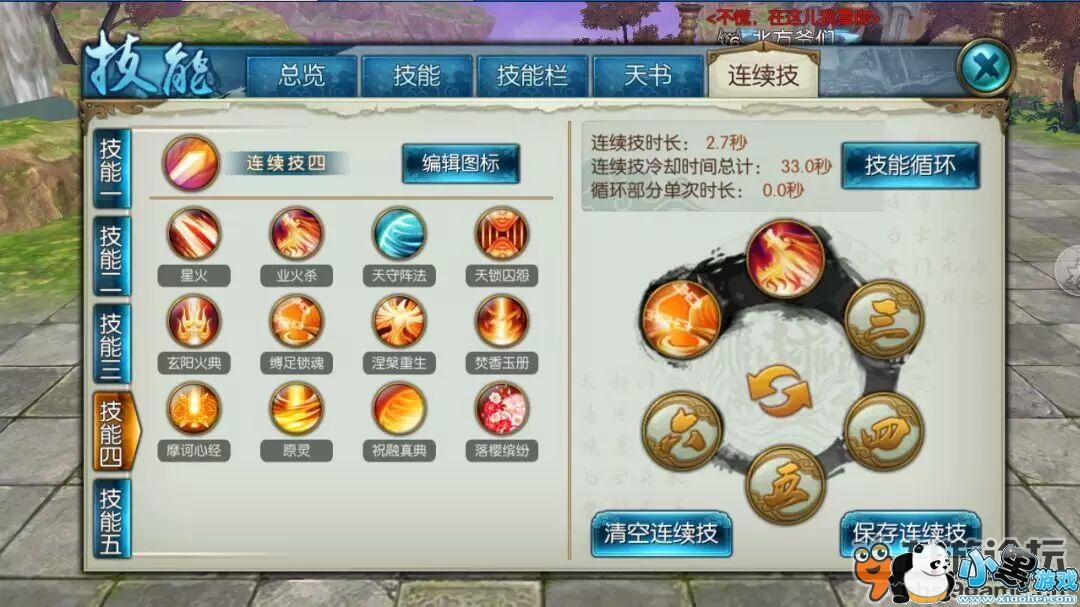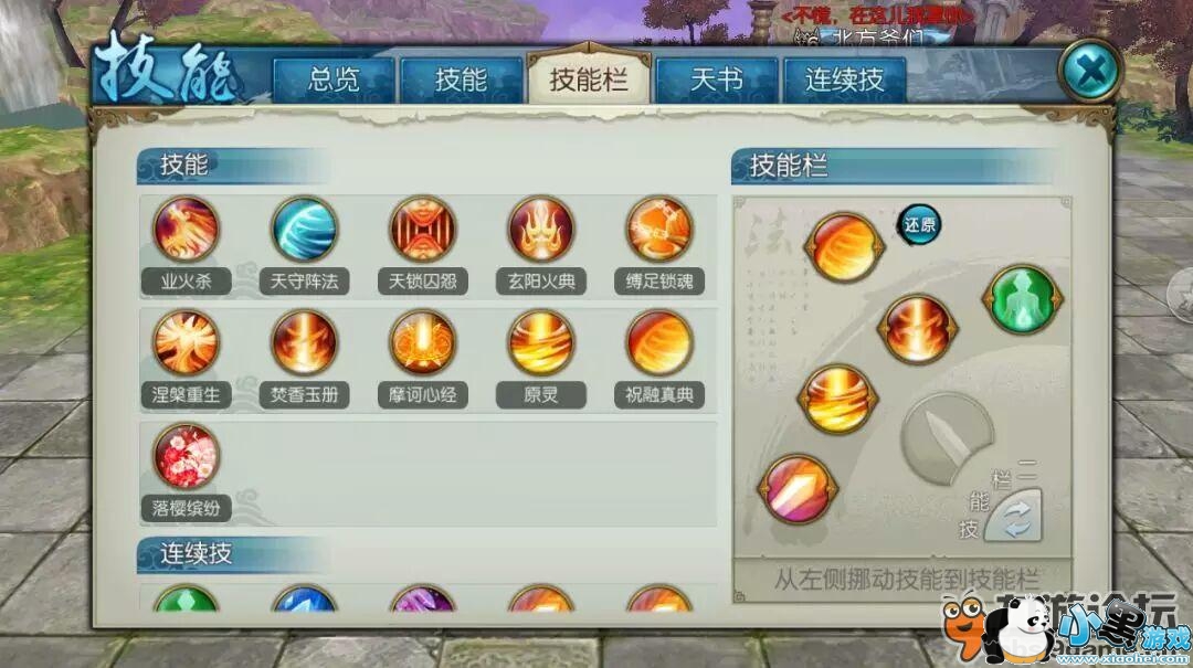 目前诛仙手游技能栏包括xp键,一共9个技能位,而每个职业门派技能9个,加上法宝技能就10个,更别说封神新加了两页封神技能了,所以连续技的使用是必不可少的。